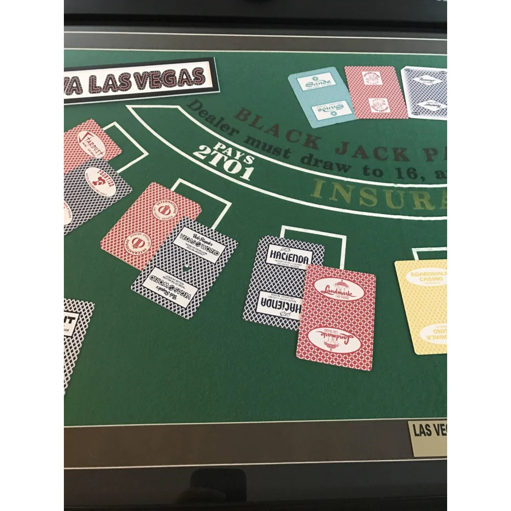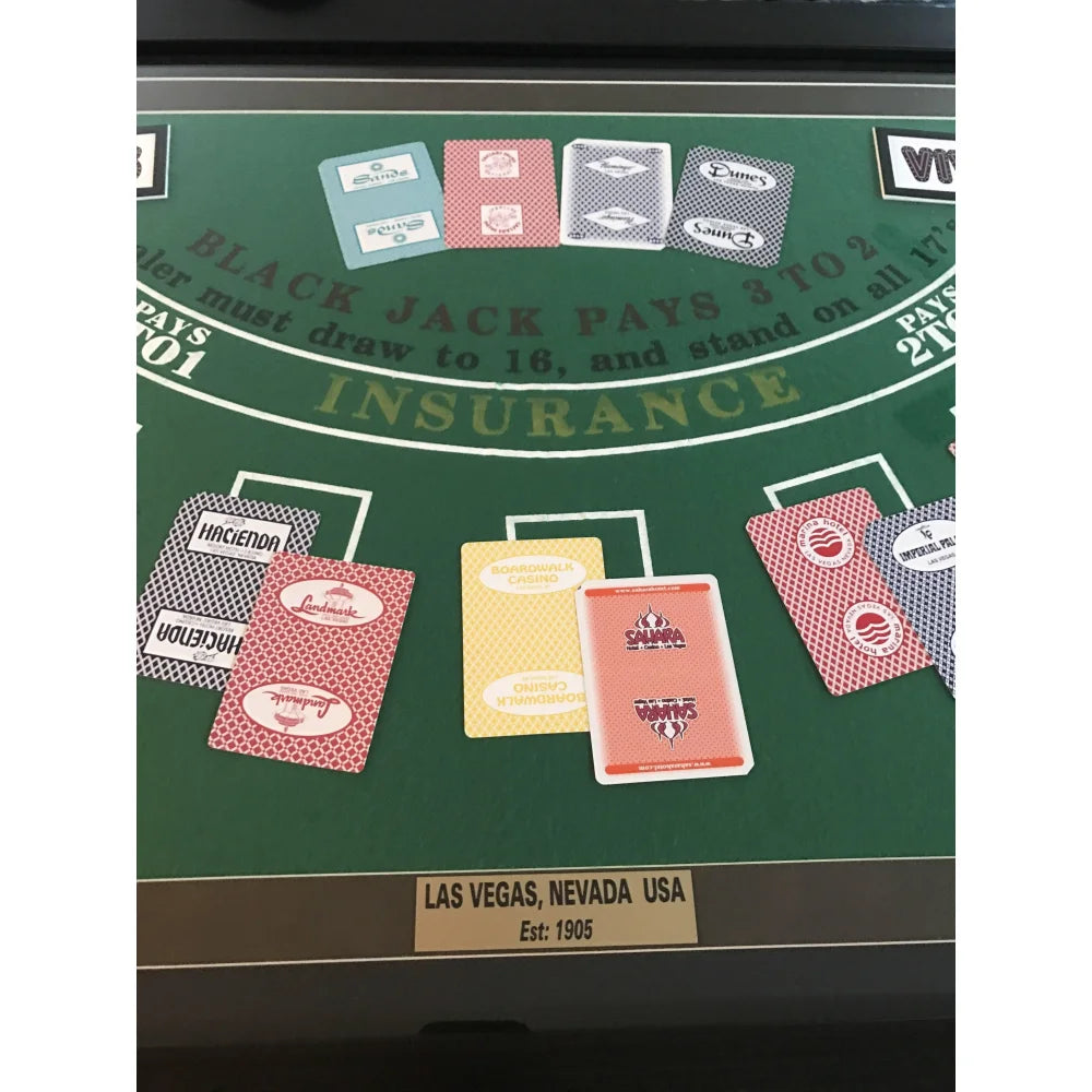 Las Vegas Hotels Authentic Playing Cards Blackjack Table Collage Framed #D/10