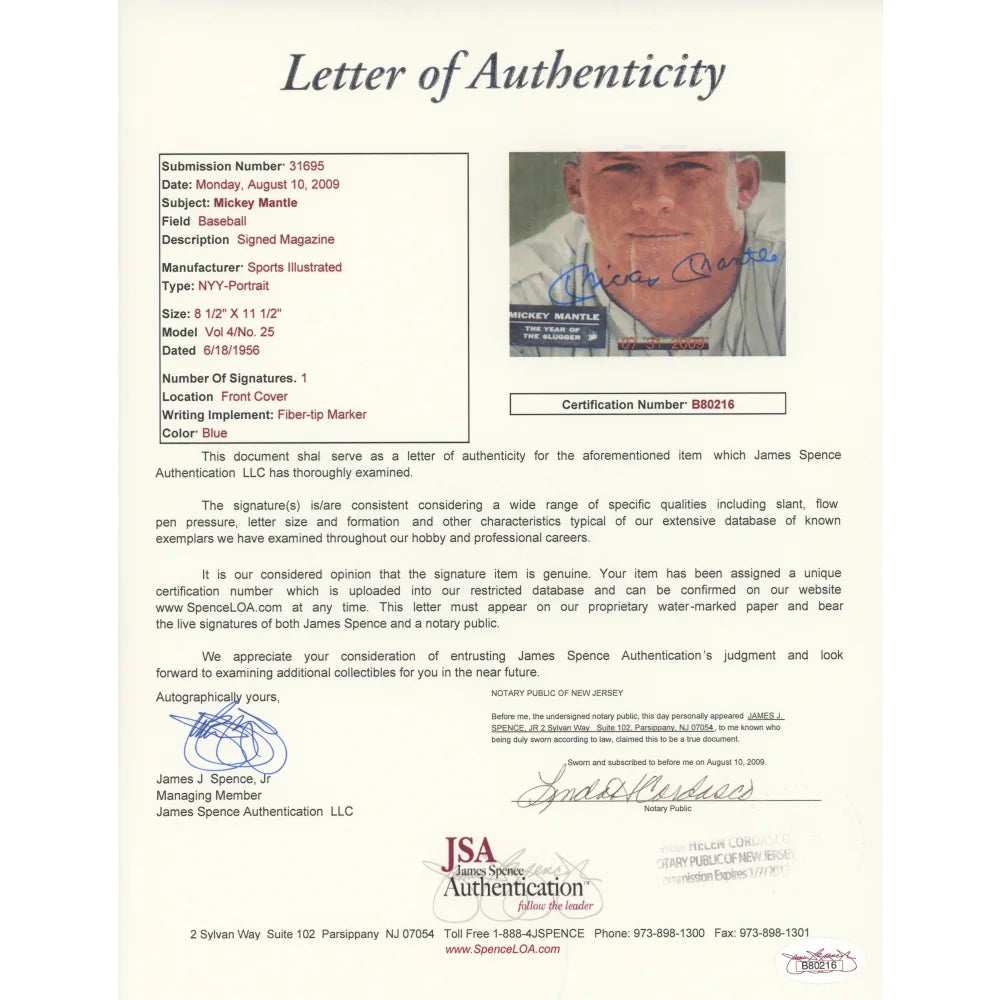 Mickey Mantle Signed 1956 Sports Illustrated Magazine 1st Cover JSA COA 6/18/56 Autographed NY Yankees