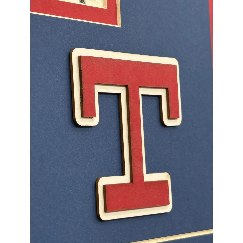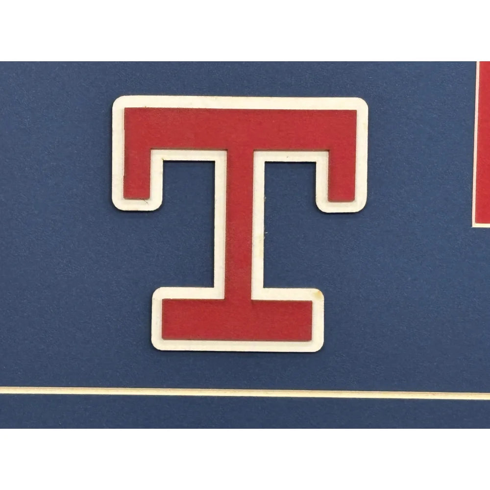 3D laser-cut Texas Rangers logo — precision cut, raised, and layered to add depth and a high-end custom finish
