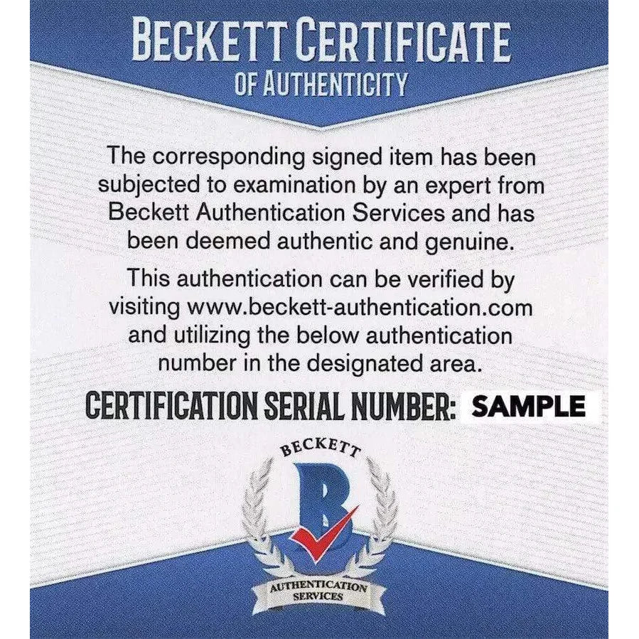 Certificate of Authenticity: This item is certified authentic by Beckett Authentication Services (BAS), one of the largest & most reputable authenticators in the industry. This piece includes the BAS certificate of authenticity card with a tamper proof authentication sticker on the item. This item can be verified at any time/ anywhere on the BAS online database on their website. Note: there are random black marker stray marks throughout glove from when it was being signed by him.