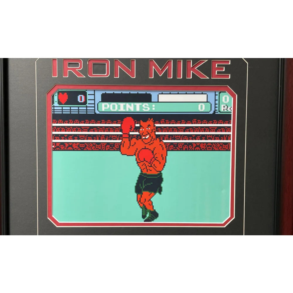 This is a must-have for the man cave as this framed collage features an autographed original 1987 Nintendo Entertainment System (NES) Mike Tyson's Punch-Out!! Video Game Cartridge signed by Mike Tyson himself!!! You can find the signed screenshot photo of Mike all day long through the third party market but finding an actual cartridge signed by Mike, you won't see these around and a true collectors piece!! This is cartridge is an original one where you could plug it into your NES gaming system and the game actually works!Â