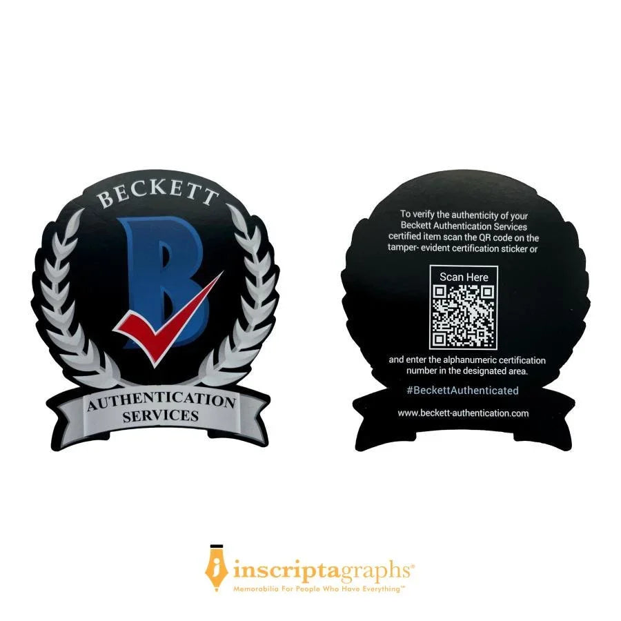 This autograph is certified authentic by Inscriptagraphs Memorabilia (IGM) and also includes authentication from Beckett Authentication Services. The piece includes an official Certificate of Authenticity and tamper-evident authentication verification, ensuring trusted provenance and long-term collector confidence.