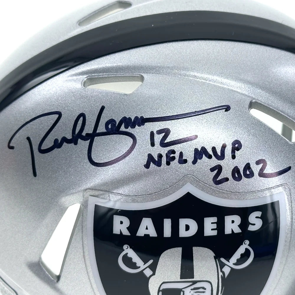 Rich Gannon Autographed Oakland Raiders Speed Mini Helmet with “NFL MVP 2002” Inscription – Inscriptagraphs & Beckett Certified Authentic