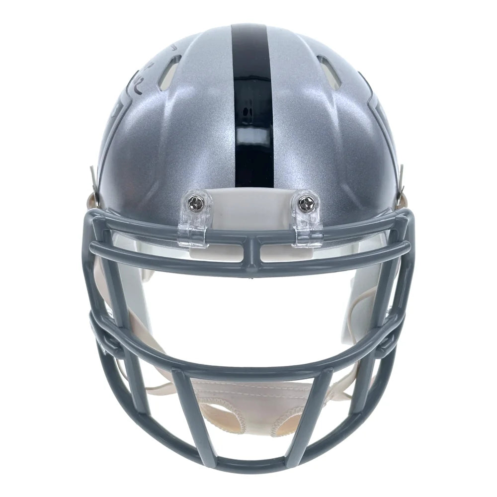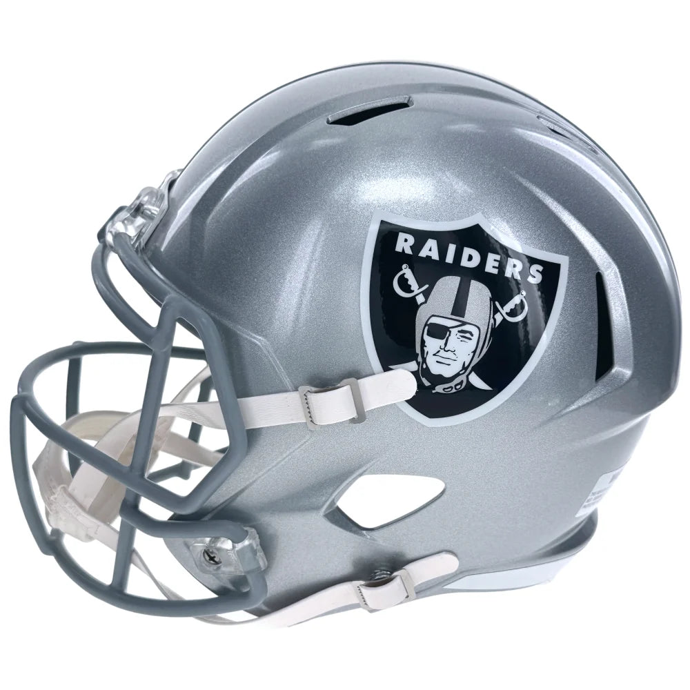 Official Riddell speed-style mini helmet design with authentic Raiders colors and decals