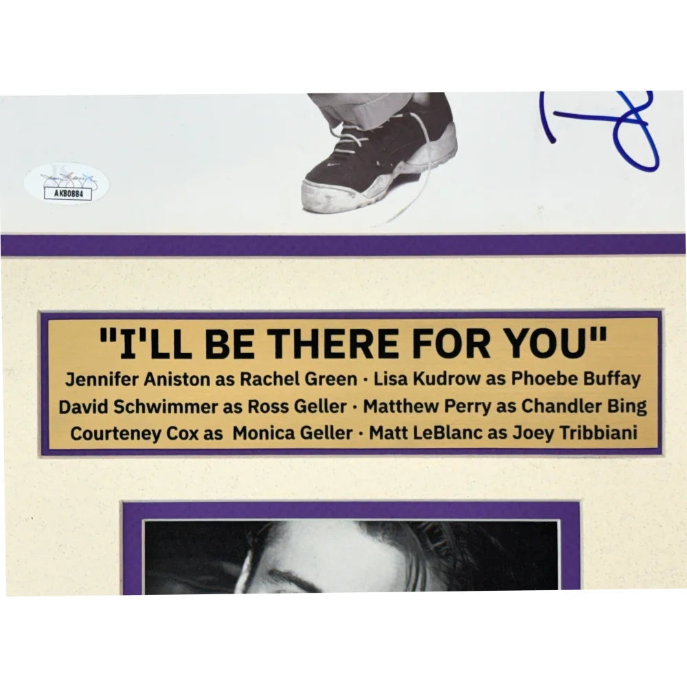 Completing the presentation is a prominent gold engraved nameplate featuring the iconic theme song lyric “I’ll Be There for You,” along with full cast credits: Jennifer Aniston as Rachel Green • Courteney Cox as Monica Geller • Lisa Kudrow as Phoebe Buffay • Matt LeBlanc as Joey Tribbiani • Matthew Perry as Chandler Bing • David Schwimmer as Ross Geller. The entire piece is professionally matted and framed under clear plexiglass for premium protection and gallery-quality presentation.