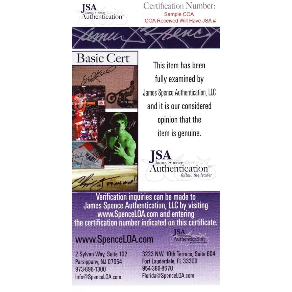 This autograph has been certified authentic by James Spence Authentication (JSA), a trusted leader in celebrity memorabilia authentication. The official JSA hologram and full Certificate of Authenticity are included, ensuring 100% authenticity and long-term collectible value.