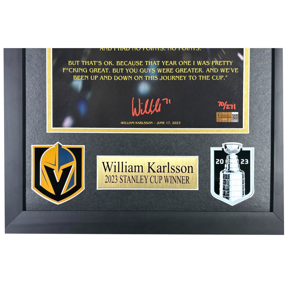 William Karlsson Signed 11x14 Stanley Cup Parade Speech Photo #D/271 Framed Vegas Golden Knights IGM COA Autograph