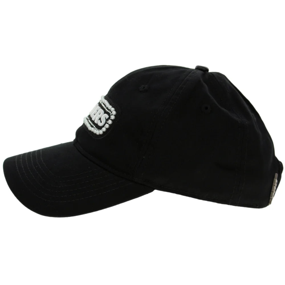 Showcase your allegiance to the Silver and Black with elevated flair in the Las Vegas Raiders Women’s Pearl Logo Hat by Pro Standard. Designed for fans who crave a touch of elegance, this black cotton cap blends sporty pride with fashionable details. The front features a tonal black Raiders logo, accented by carefully arranged rhinestones and pearl embellishments for a striking, upscale look. On the back, an embroidered white Raiders wordmark adds a bold finishing touch. Whether you're tailgating or hitting the town, this hat brings polished game day energy to any outfit.