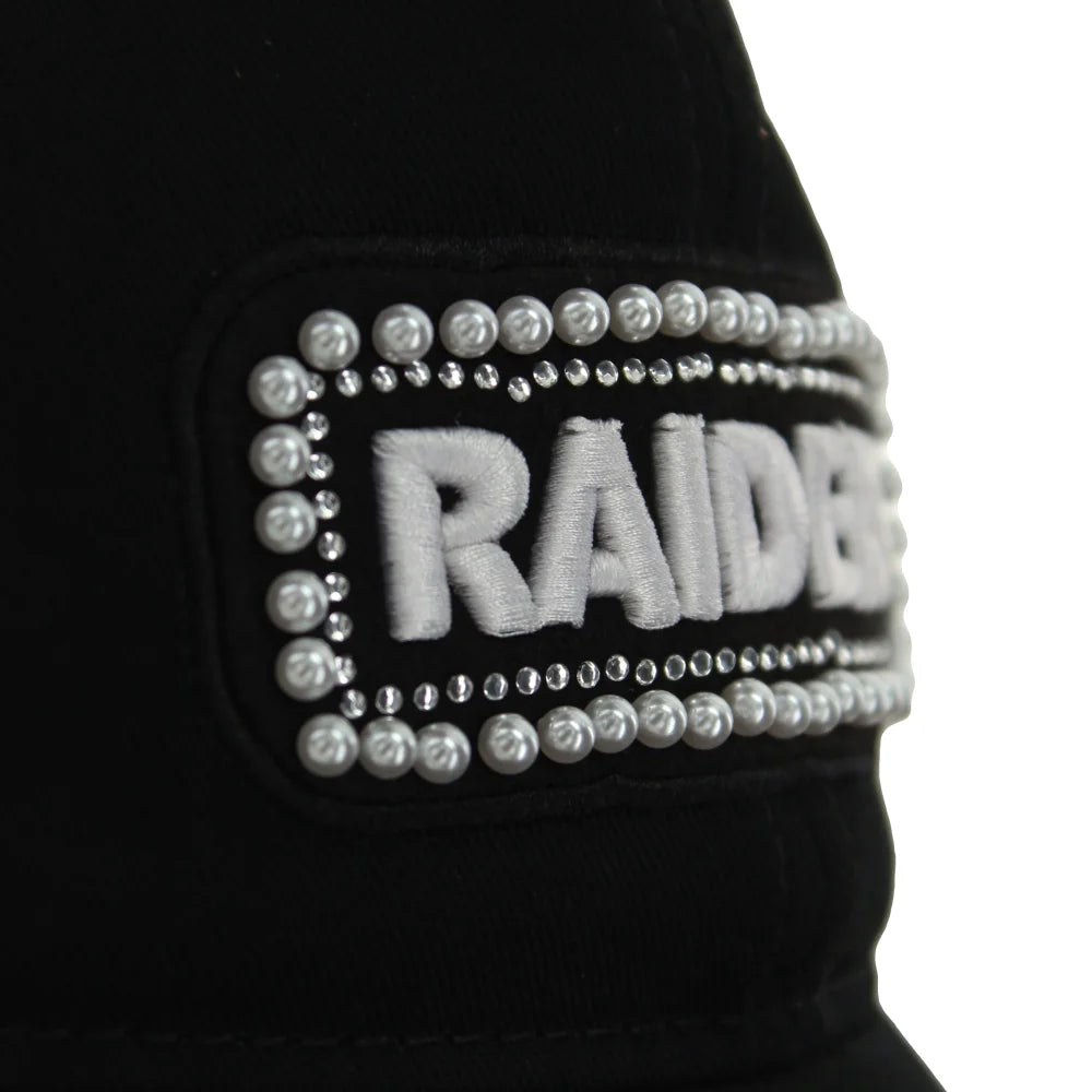 Embroidered Raiders logo with rhinestone and pearl accents