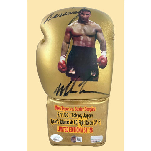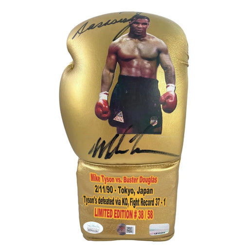 View full details about Mike Tyson / Michael Spinks Dual Signed Tyson vs. 16x20 Photo *91 Second KO* #D/20The gold boxing glove line is limited edition to only 58 gloves made in the entire series. Each glove is made by hand and displays an image of Mike...