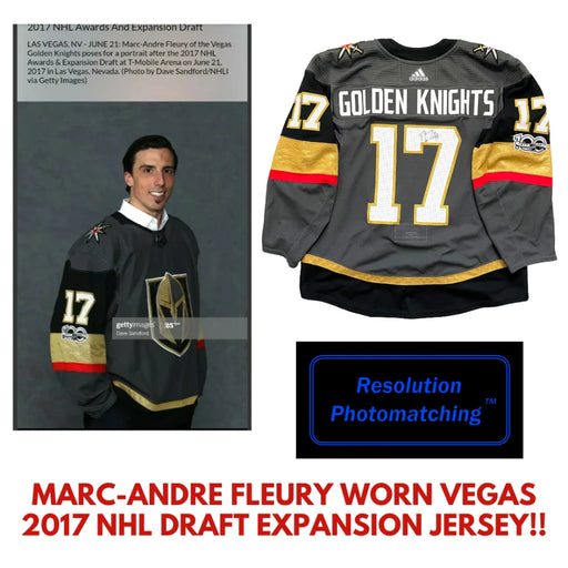 Marc-Andre Fleury Hand-Signed Used / Worn Jersey – Vegas Golden Knights 2017 NHL Expansion Draft – 1/1 Photomatched with JSA COA & Tamper-Proof...