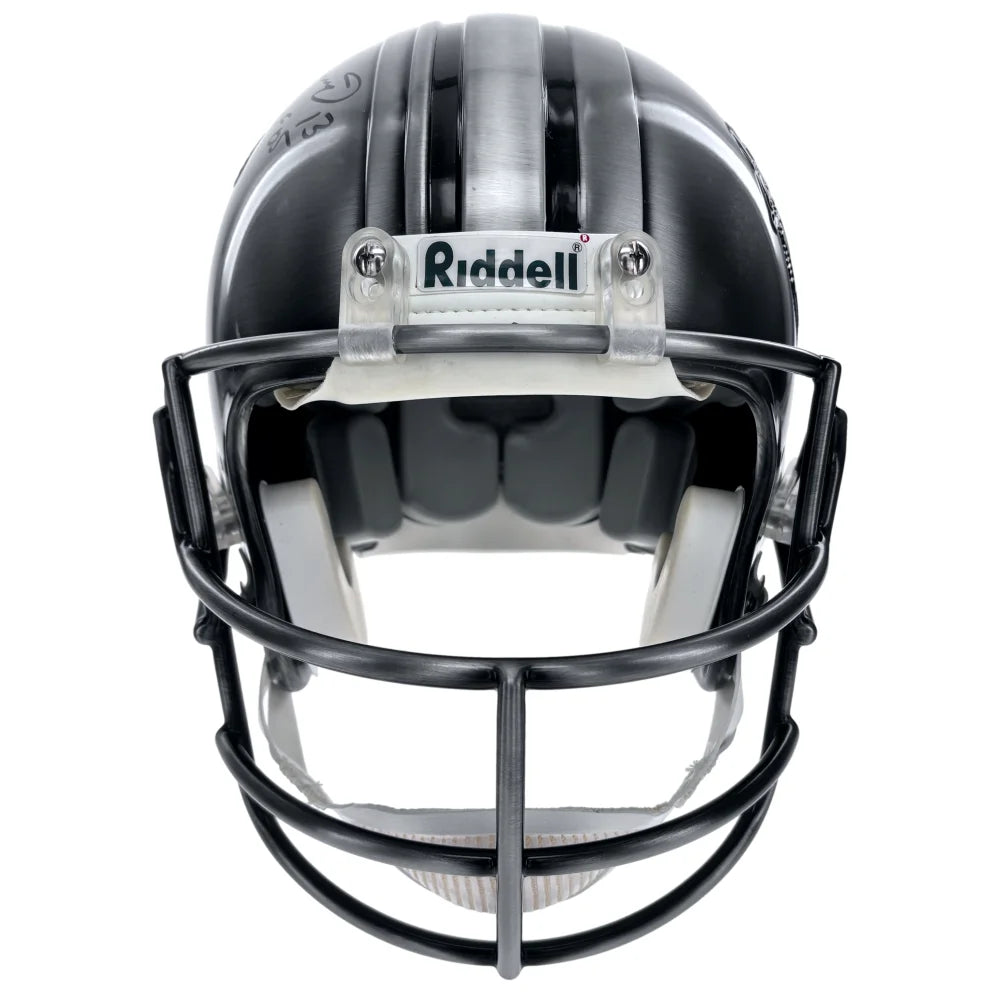 Own one of the rarest and most elite signed football helmets ever produced of Dan Marino — and unquestionably one of the rarest Dan Marino collectibles you can own. This is a hand-signed Riddell Pewter Full-Size Authentic Helmet, limited to just 213 pieces worldwide, with this example individually numbered #94/213. Produced in a one-time special release by Riddell (circa 2005–2007), these helmets feature a true metal outer shell — not painted, not a metallic finish, but actual metal construction.