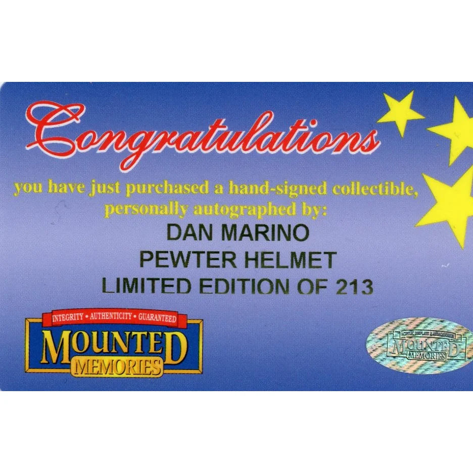 Dan Marino Autographed Miami Dolphins Pewter Full Size Helmet #D/213 JSA Signed