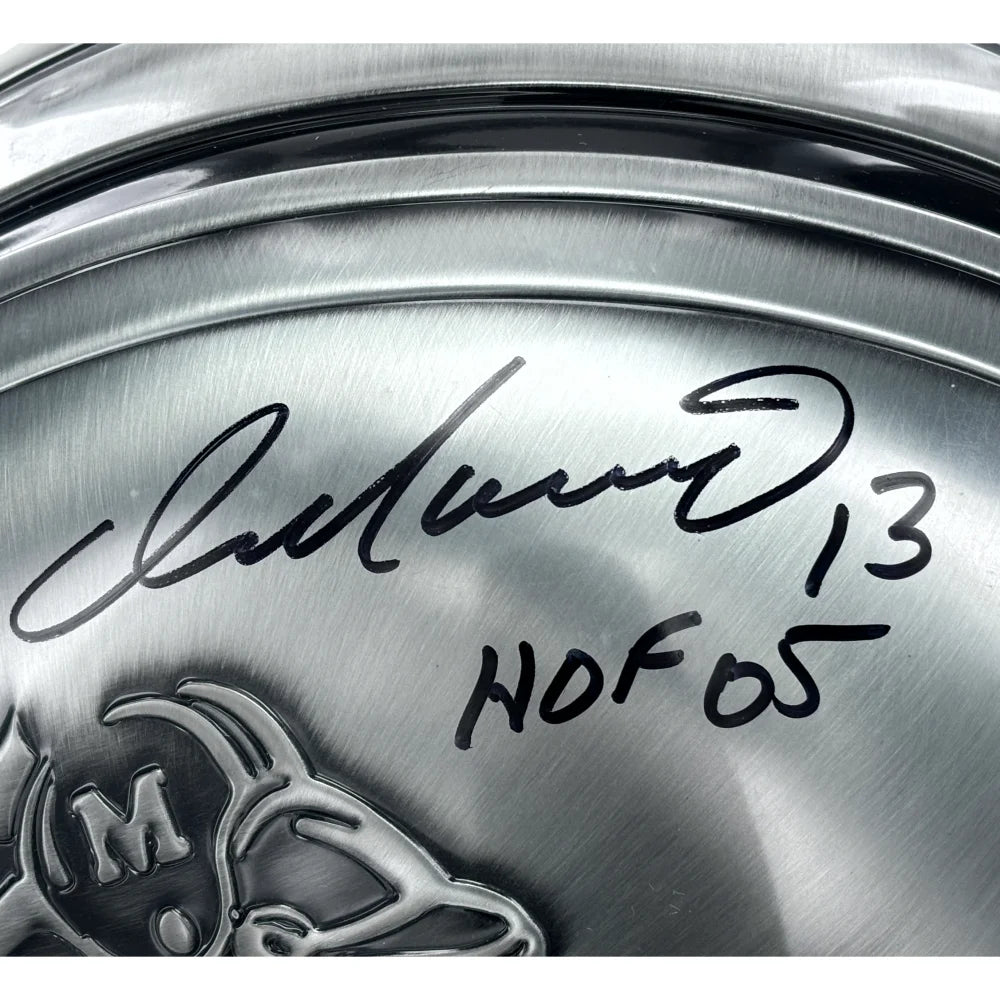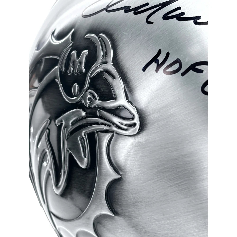 Due to extreme manufacturing difficulty and strict quality control standards, Riddell discontinued the line after this single production run. No reissues. No second production. As a result, surviving examples are exceptionally scarce nearly 20 years later and almost never surface publicly. Among signed Marino helmets, this pewter metal edition is considered one of the most premium and difficult formats to acquire from his autograph portfolio.