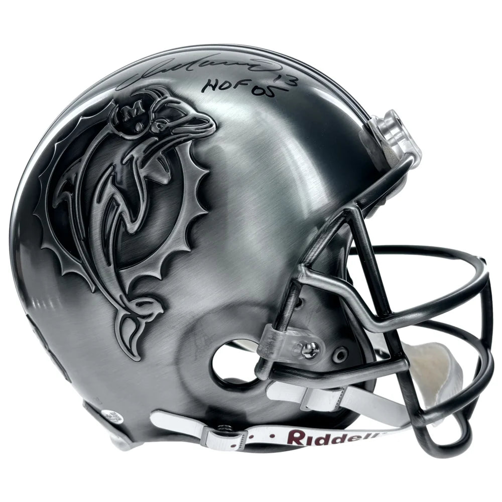Weighing nearly 7 pounds and complete with authentic interior padding, this full-size helmet delivers a substantial, museum-caliber presence that immediately separates it from standard signed helmets. Staying true to Miami Dolphins on-field tradition, the helmet features the team’s official logo configuration, making it a striking and authentic display piece for any serious collector.