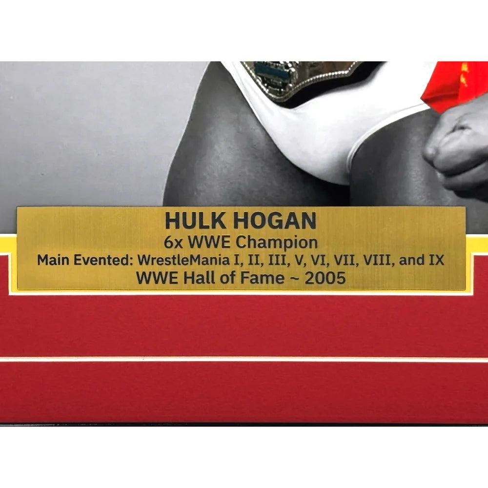 Celebrate the legendary career of Hulk Hogan, the iconic wrestling superstar who defined an era of professional wrestling, with this dynamic framed memorabilia piece. As a 6-time WWE Champion, WWE Hall of Famer, and the face of Hulkamania, Hogan's larger-than-life persona and unforgettable matches revolutionized sports entertainment, inspiring generations of fans worldwide. This collectible display captures the essence of his electrifying legacy.