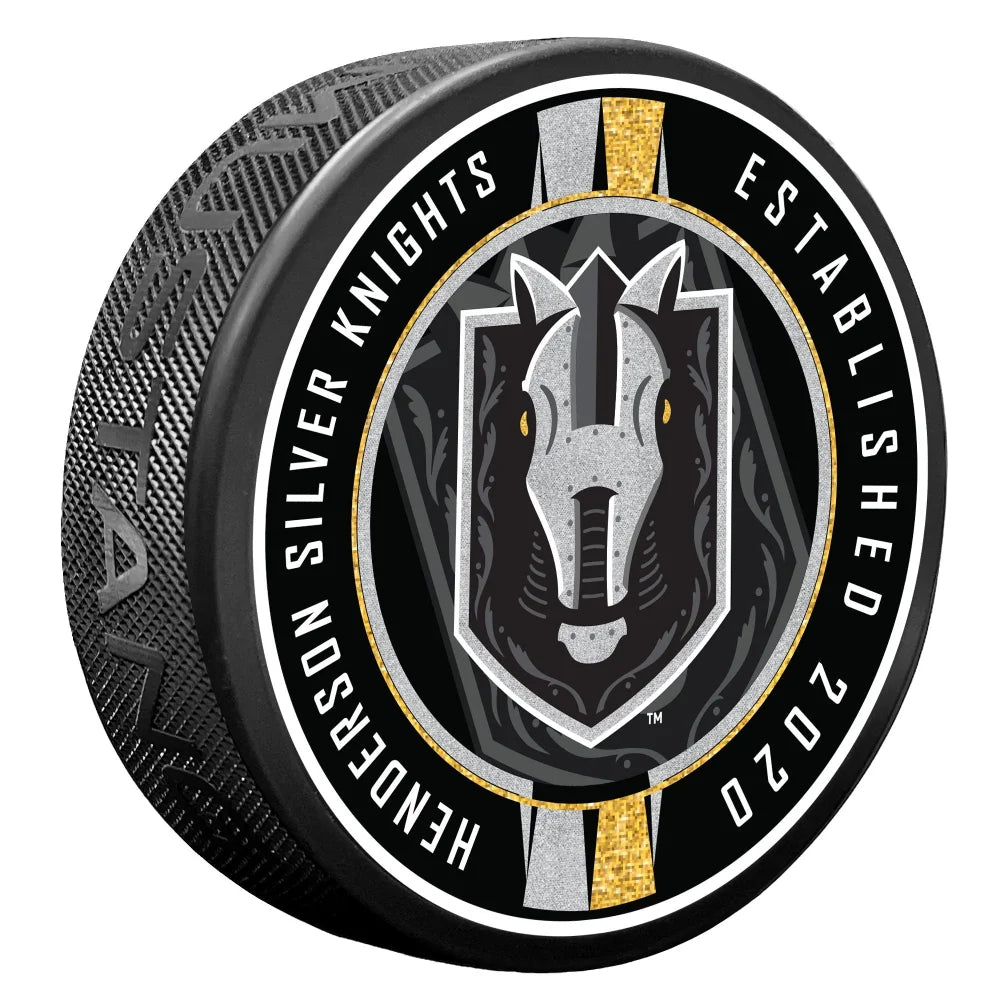 Spread your Utah passion with the Ribbon Henderson Silver Knights puck! The puck features the team’s logo over a bright ribbon design. The 3D engraving adds texture that you won’t find with just a regular printed puck, making this a stand-out in your collection!