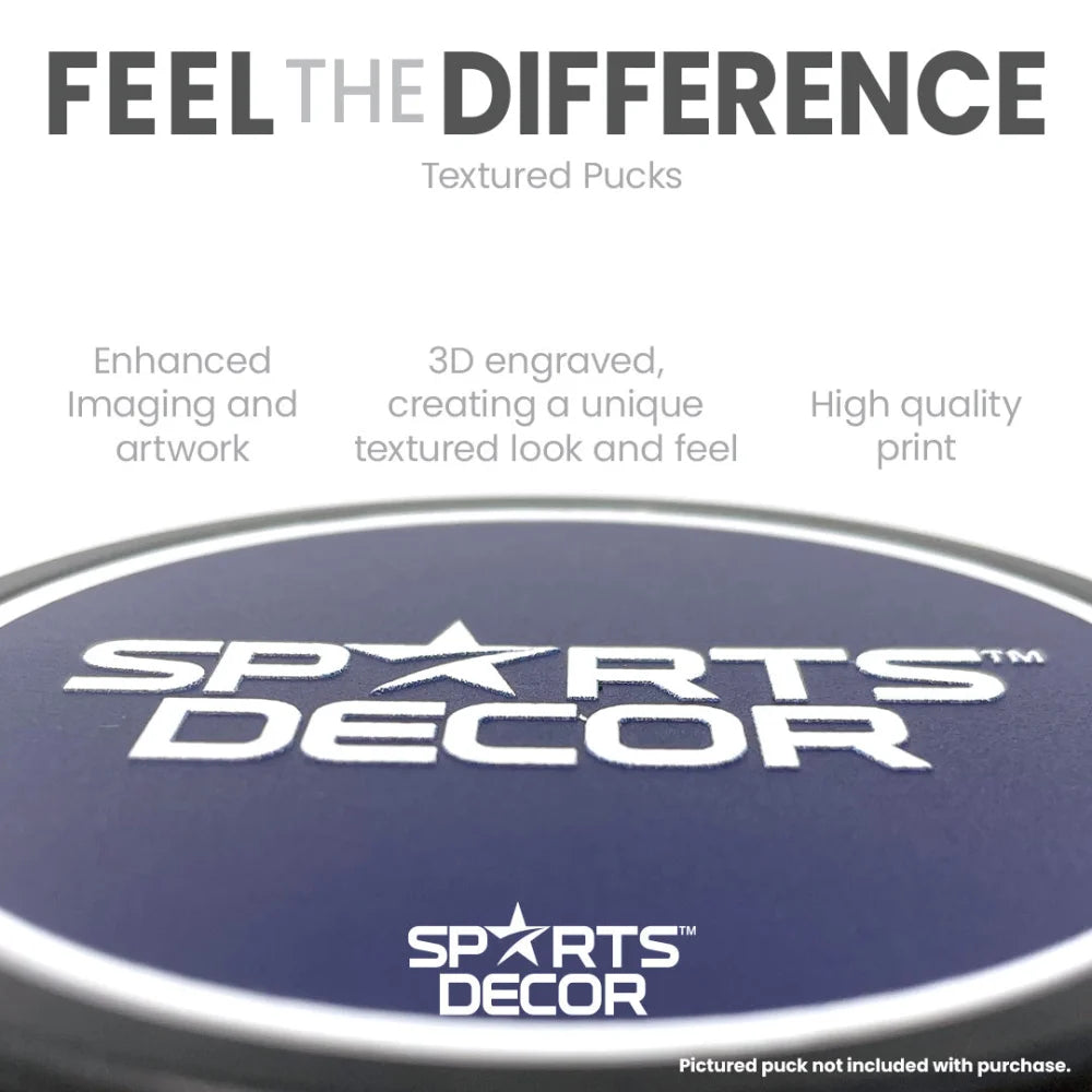 Spread your Knights passion with the Slogan Vegas Golden Knights puck! The puck features the team’s logo and slogan over a bright graffiti design. The 3D engraving adds texture that you won’t find with just a regular printed puck, making this a stand-out in your collection!