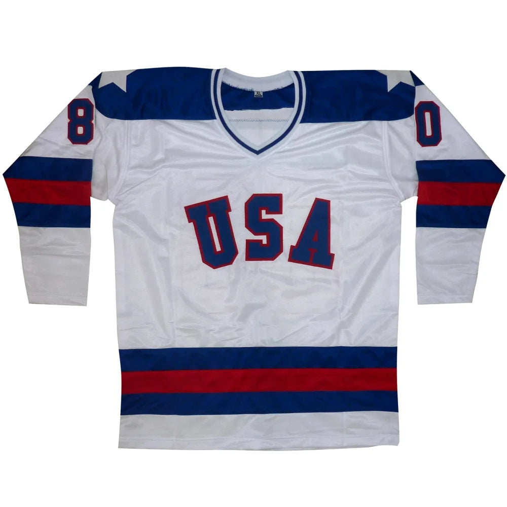1980 U.S. Olympic Hockey Team Autographed (USA White #80) Custom Jersey - Miracle On Ice - 18 Team Member Signatures - Beckett Witnessed