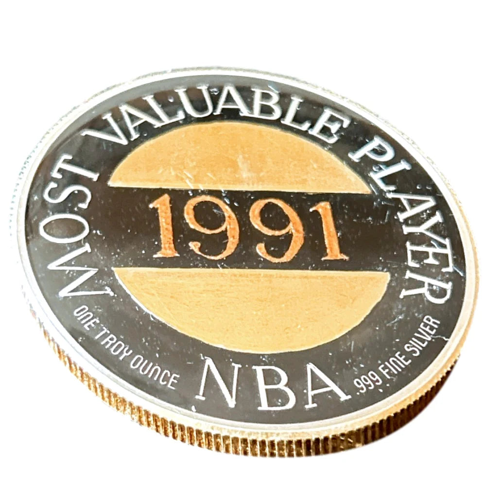 1991 Michael Jordan MVP Bulls 1oz Silver Coin with 24k Tri-gold and Black Enamel