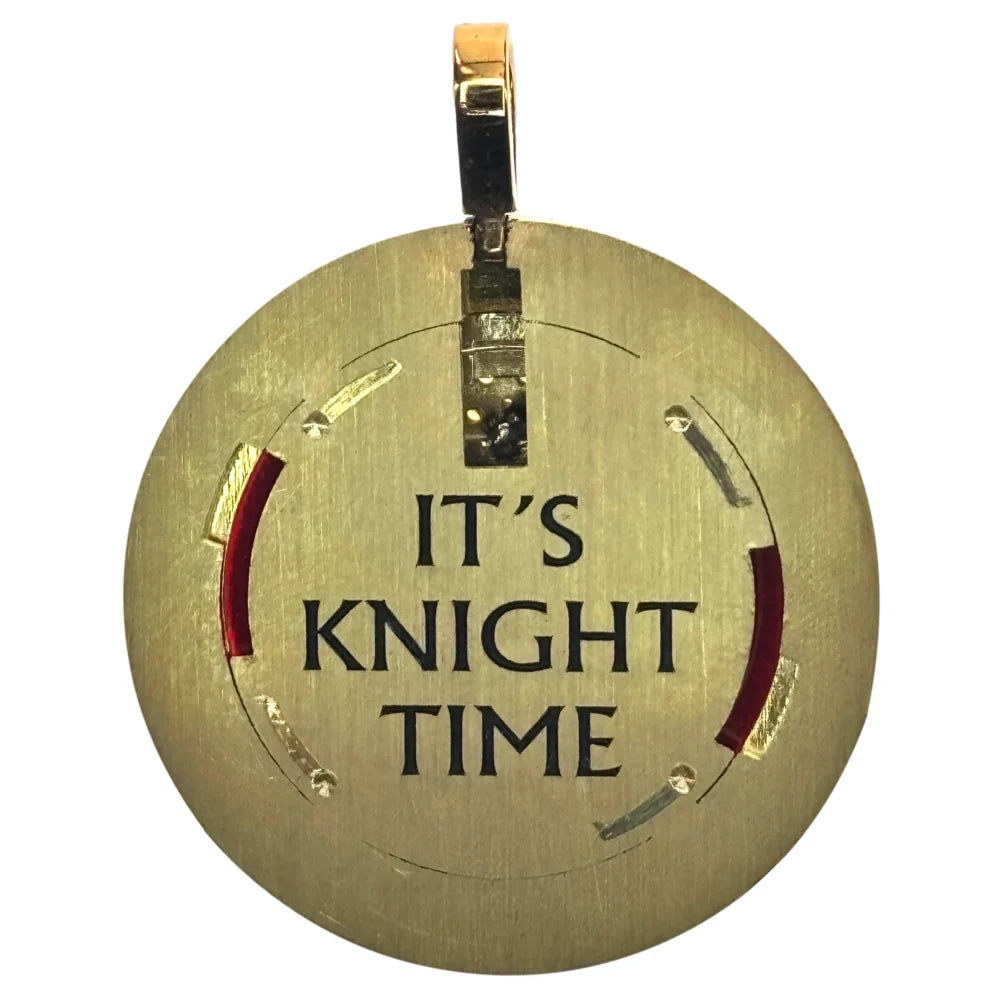 The reverse side of the detachable top is engraved with “It’s Knight Time.”