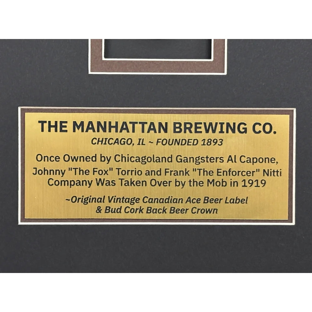Al Capone Owned Manhattan Brewing Original Artifacts Framed Mafia Mob Label Cap