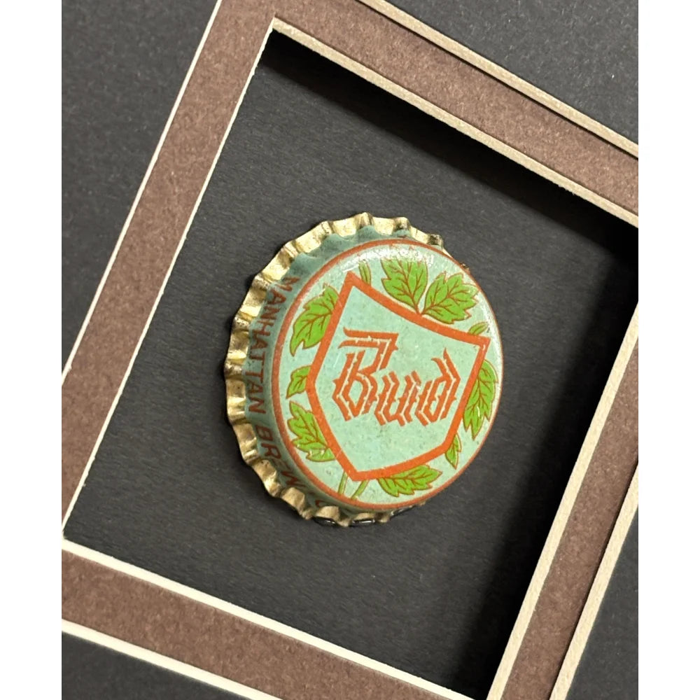 The Canadian Ace beer label and “Bud” crown cap included in this display are authentic pieces from two actual beer brands that were brewed and distributed by the Manhattan Brewing Company. Both Canadian Ace and Bud were official labels under the Manhattan portfolio, reflecting the brewery’s expansion into multiple product lines to serve a growing and diverse customer base. While the Bud brand is often mistaken for Budweiser, it had no affiliation with Anheuser-Busch and stood on its own as a Manhattan creation. These artifacts serve as rare, original remnants of the brewery’s active production history and are directly tied to one of Chicago’s most historically significant brewing operations.