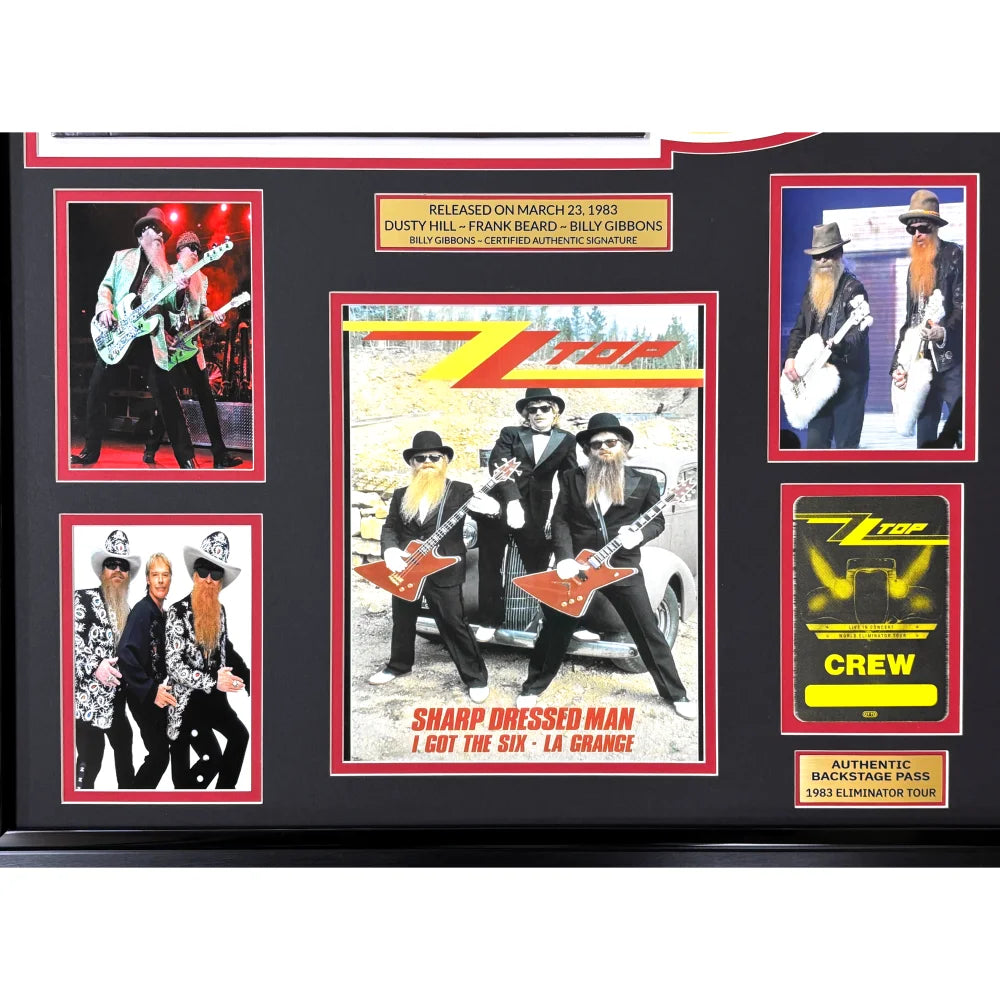 Billy Gibbons Autographed ZZ Top Eliminator Album Framed with Eliminator Tour Backstage Pass Display – Beckett Certified Authentic Collectible