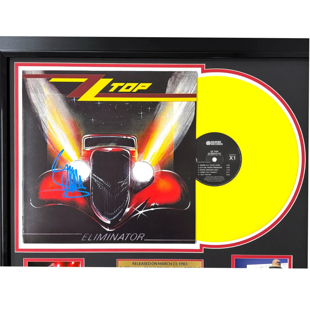 Celebrate the iconic rock legacy of ZZ Top with this striking framed memorabilia piece, featuring the Eliminator album cover signed by Billy Gibbons. Known for their distinctive sound and legendary performances, ZZ Top’s Eliminator album, released in 1983, became a defining moment in rock history with hits like Sharp Dressed Man and Legs. This collectible display honors their enduring influence.