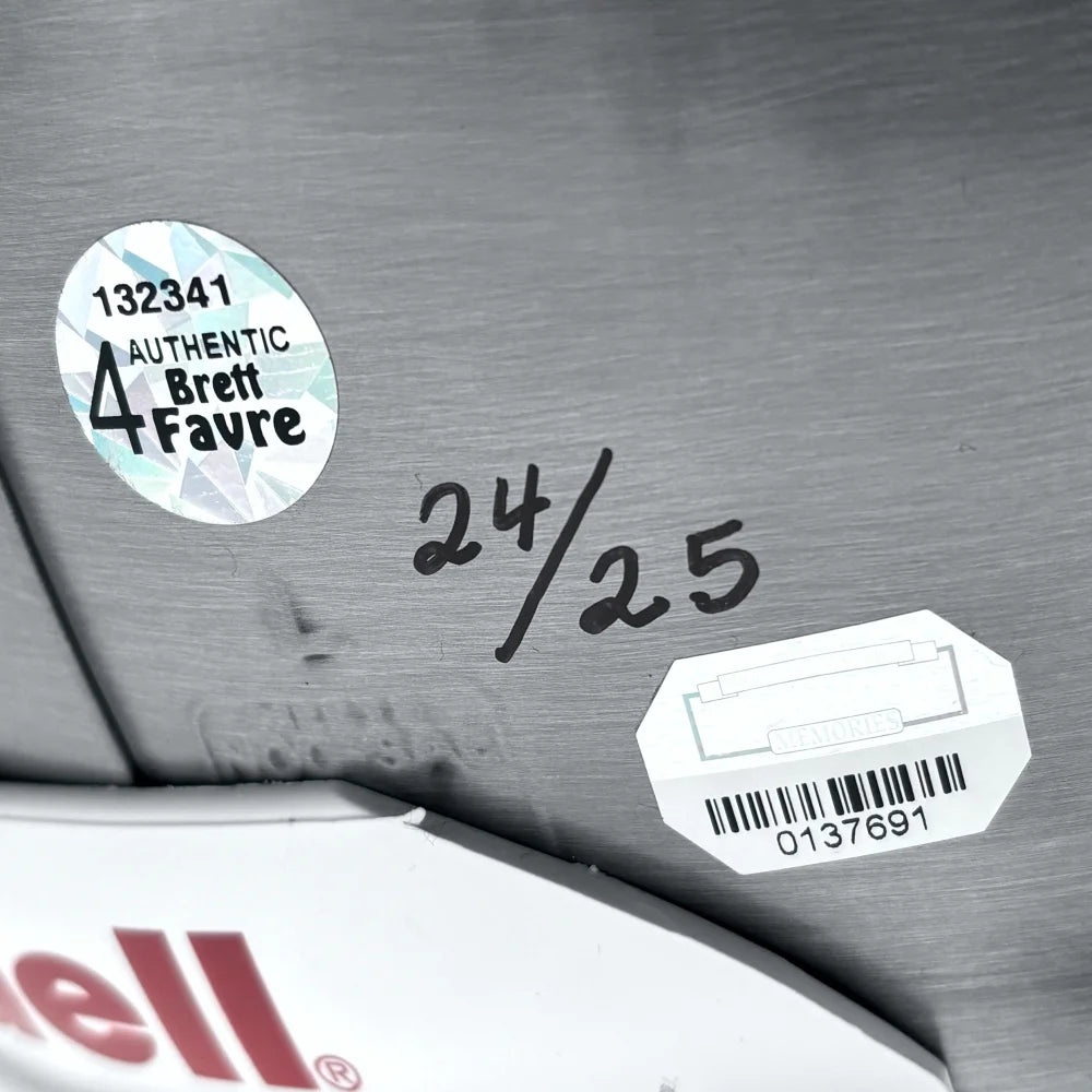 Own one of the rarest and most elite signed football helmets ever produced of Brett Favre — and unquestionably one of the rarest Brett Favre collectibles you can own. This is a hand-signed Riddell Pewter Full-Size Authentic Helmet, limited to just 25 pieces worldwide, with this example individually numbered #24/25. Ultra-low edition sizes like this are virtually unheard of in the pewter metal helmet series, placing this among the most exclusive Favre formats ever created.