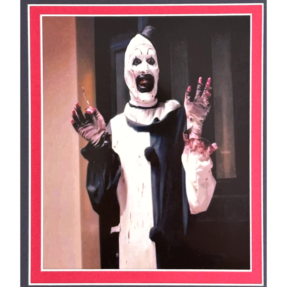 Step into the terrifying world of the Terrifier franchise with this chilling framed memorabilia display, featuring authentic signatures from the cast of the cult-favorite horror series. Known for its brutal gore, disturbing imagery, and unforgettable characters—especially the sinister Art the Clown—Terrifier has earned its place as one of the most talked-about horror films of the modern era.