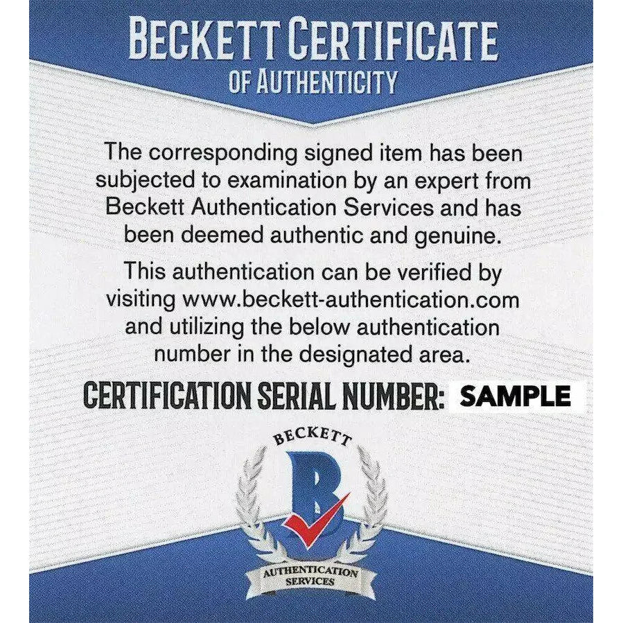 This item has been certified AUTHENTIC by one of the most reputable and recognized authenticators in the business today, Beckett Authentication Services (BAS). This item comes with a BAS numbered tamper-proof authentication sticker and Certificate of Authenticity card that can be reviewed on their website 24/7/365 to guarantee its authenticity.