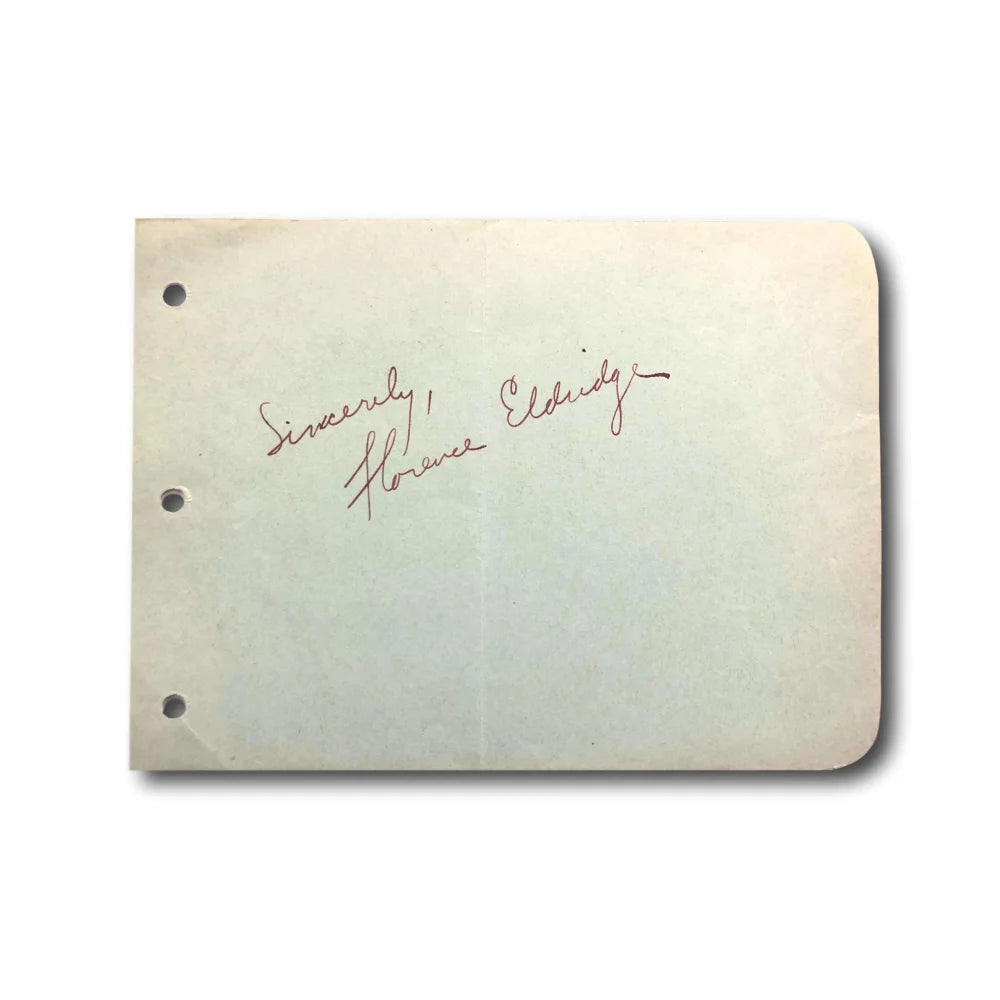 Item: Florence Eldridge hand signed album page!!! This green album page measures approx. 4.5" x 6" in size. This is a must have item for all fans of the ICON!! Autographs of her are very difficult to come by as she died way back in 1982!