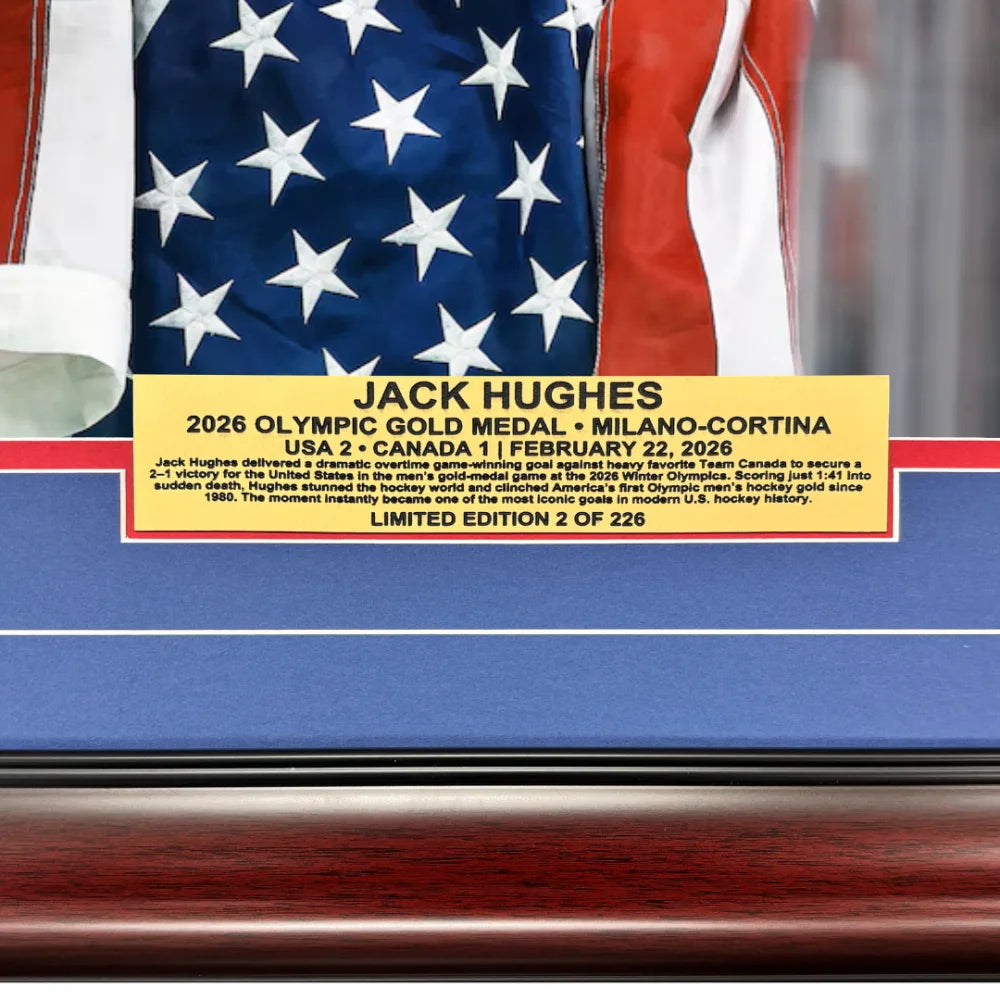 Jack Hughes Autographed 16x20 Photo Premium Framed ā 2026 Olympics Game Winner | Limited Edition /226 | Fanatics Authentic