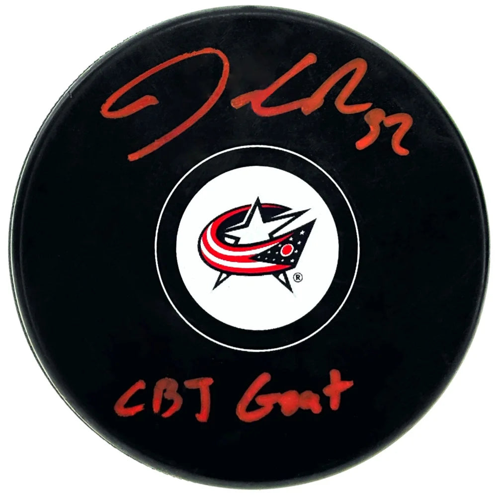Jonathan Quick Autographed Columbus Blue Jackets Puck Inscribed "CBJ GOAT" Signed COA PSA/DNA