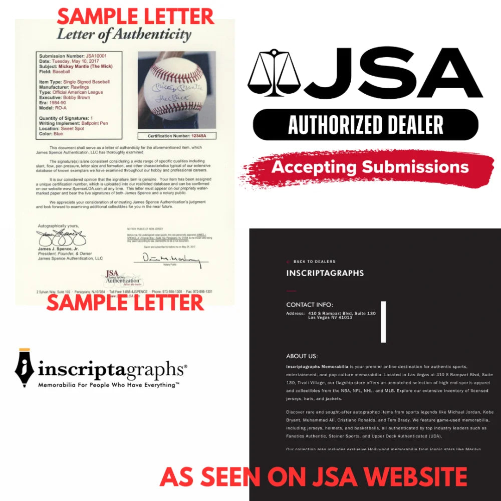 TheĀ matching JSA Letter of Authenticity is currently in process and is expected to be completed in May 2026. We are anĀ authorized JSA dealer, and the letter will be released promptly once it is officially issued by JSA.