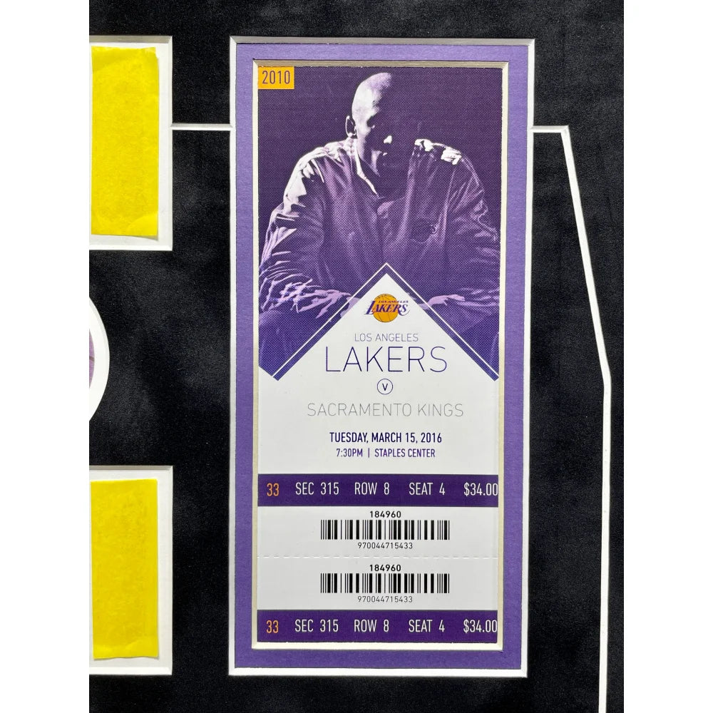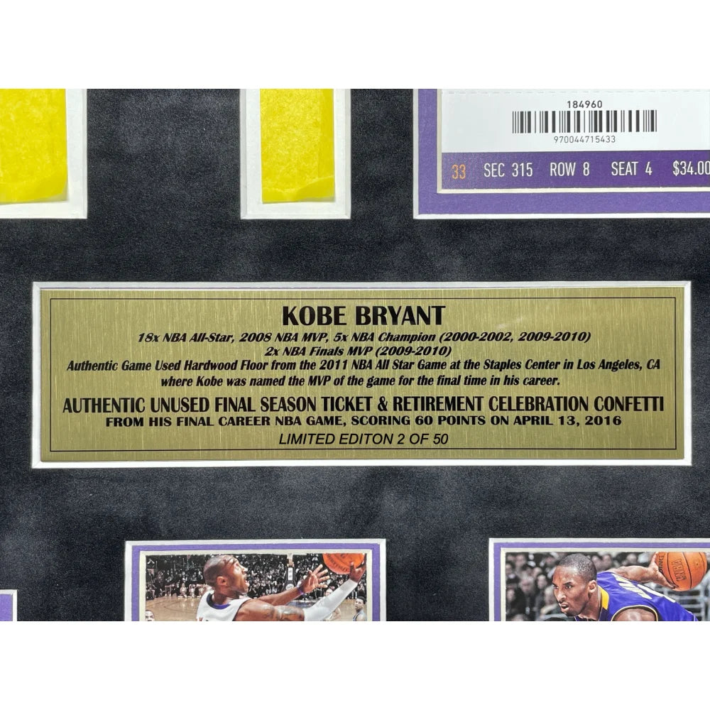 Kobe Bryant Final Lakers Game Used Authentic Floor, Confetti & Final Season Ticket Collage Framed