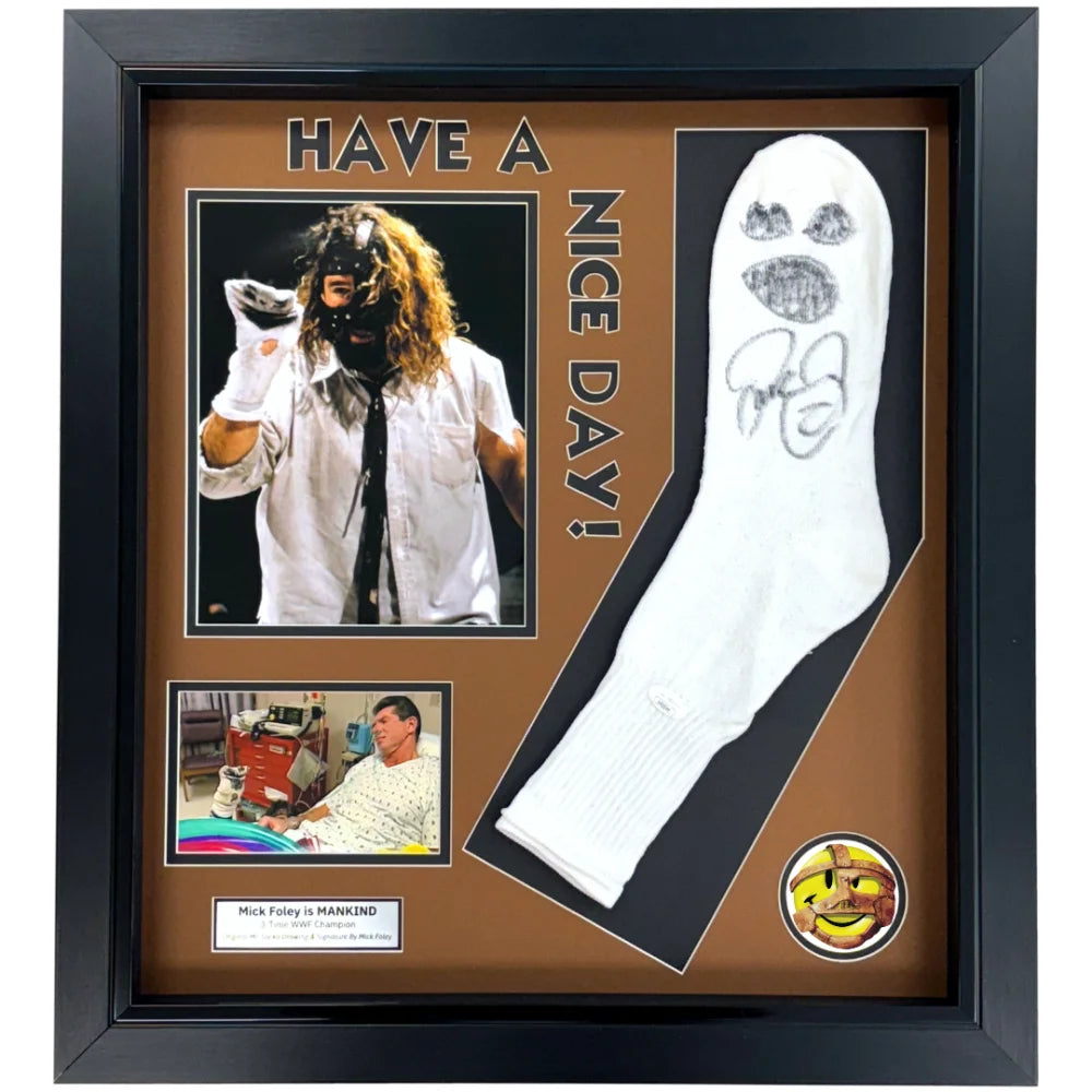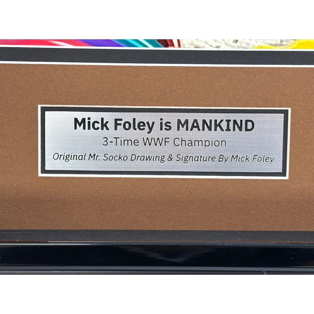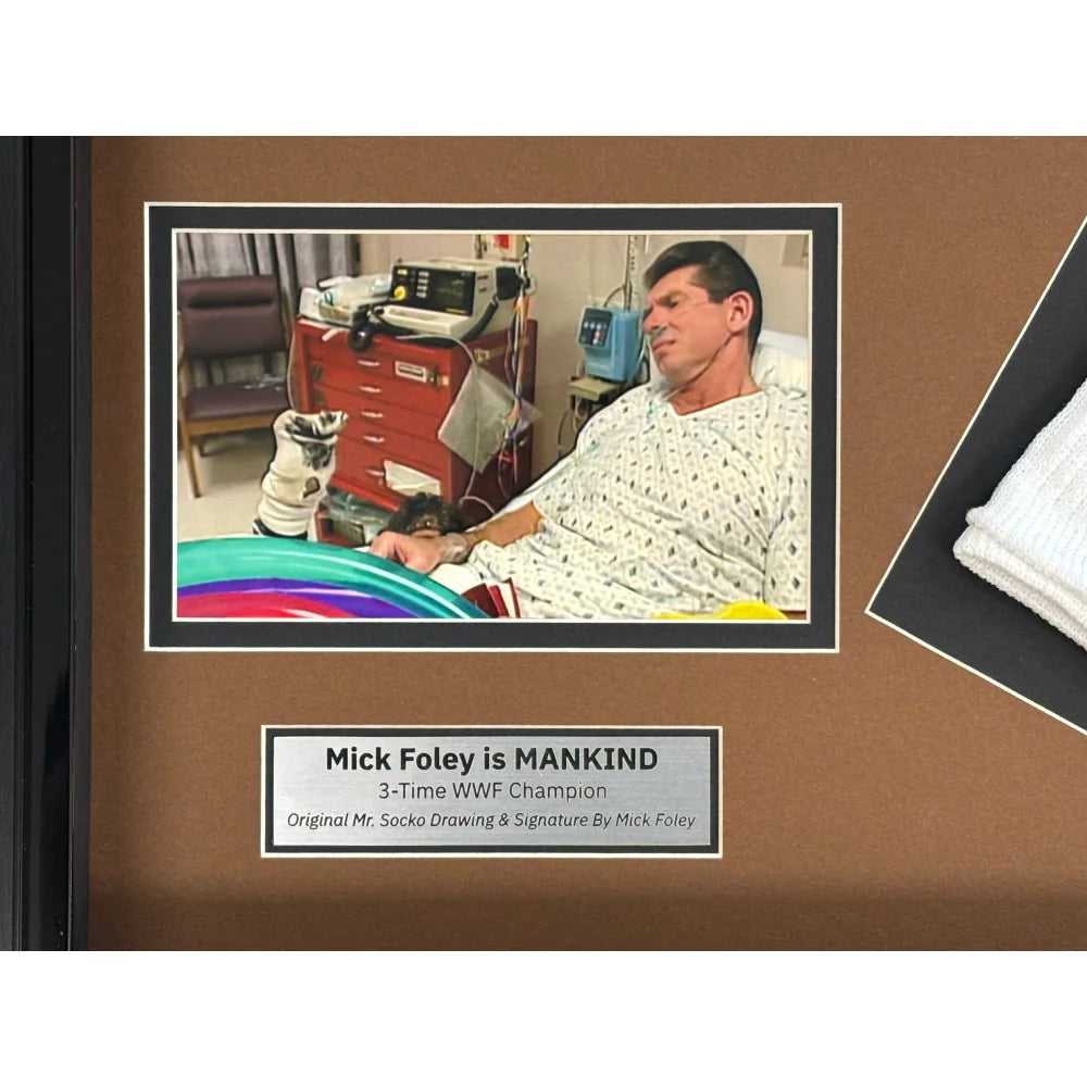Mankind Mick Foley Autographed Mr. Socko Authentic Drawing Framed JSA WWE Signed WWF