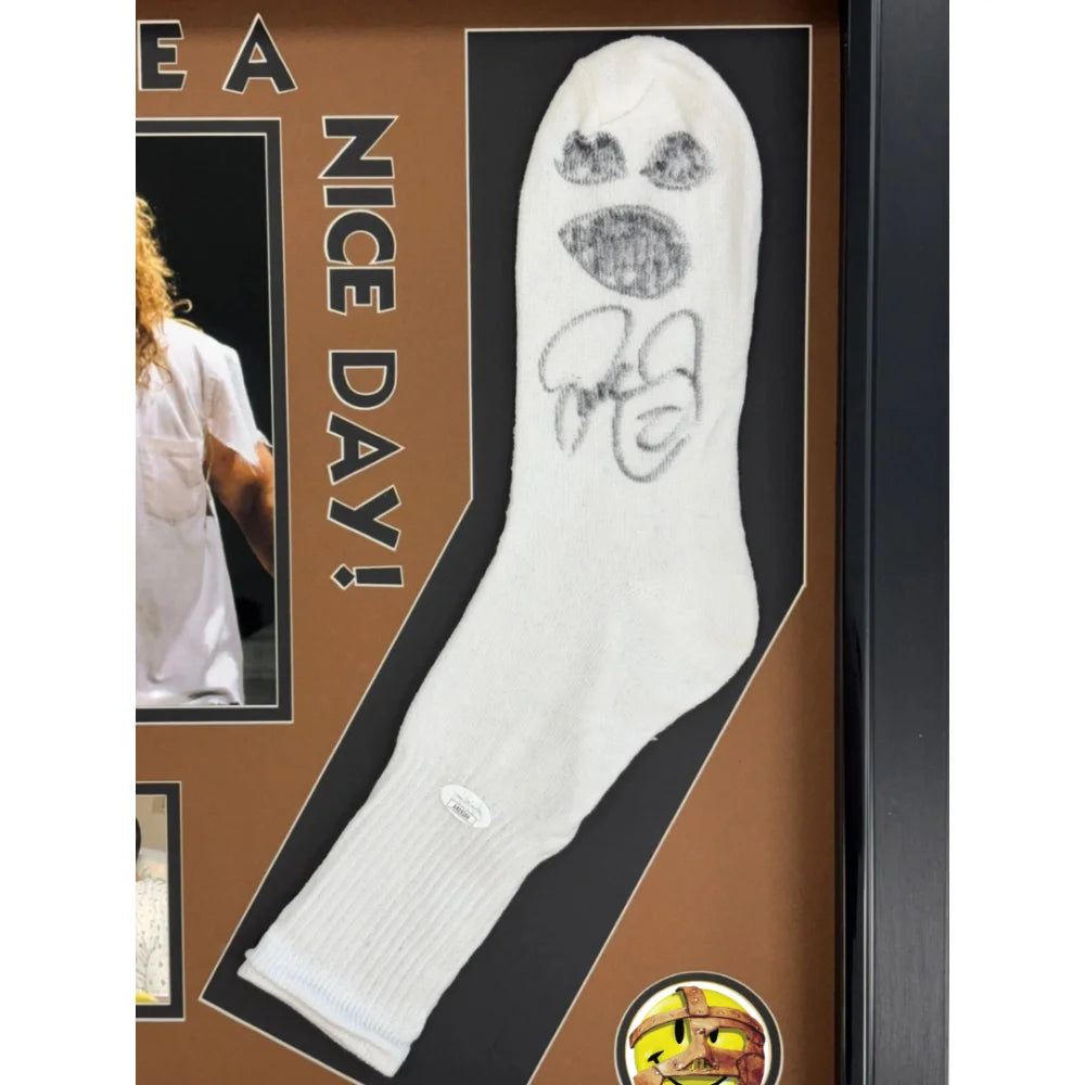 This is a stock listing using a representative image. You will receive one randomly selected sock (left or right) with unique hand-drawn artwork and autograph by Mick Foley. No two pieces are exactly alike, making your Mr. Socko a true one-of-a-kind collectible.