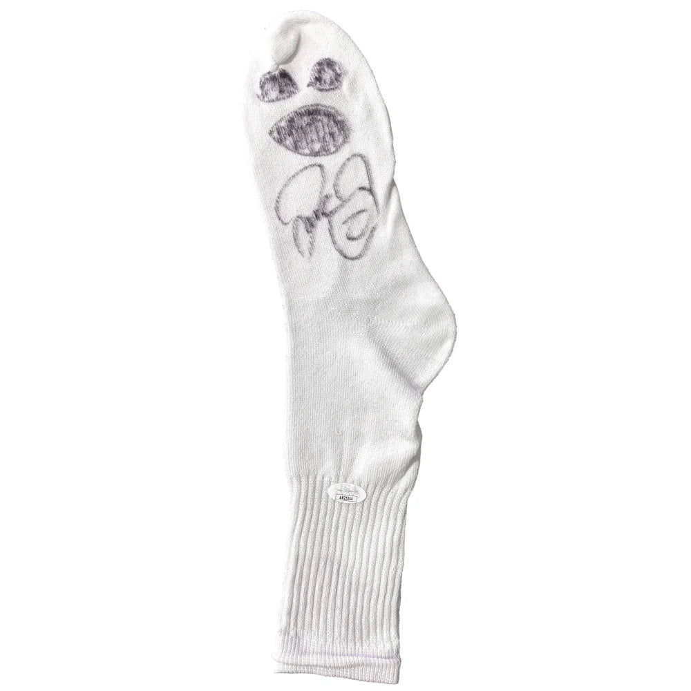 Unlike many versions on the market that featureĀ printed faces with a signature, this sock isĀ 100% hand-drawn by Mick himself, making each one a unique piece of memorabilia. Foley also personally autographed each sock, turning it into a must-have for collectors and hardcore fans.