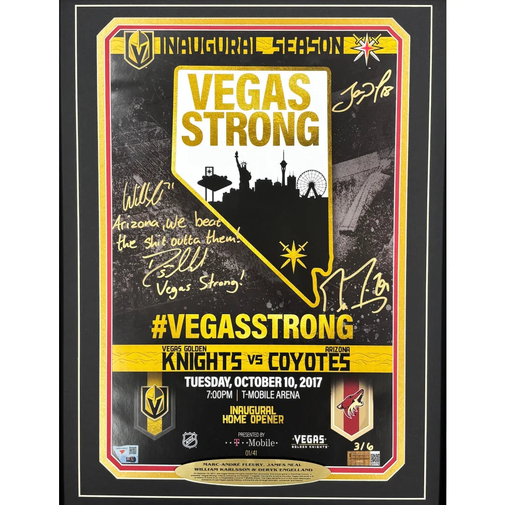 Marc-Andre Fleury Neal Karlsson Engelland Signed 1st Poster 2017 Vegas Golden Knights Framed Strong