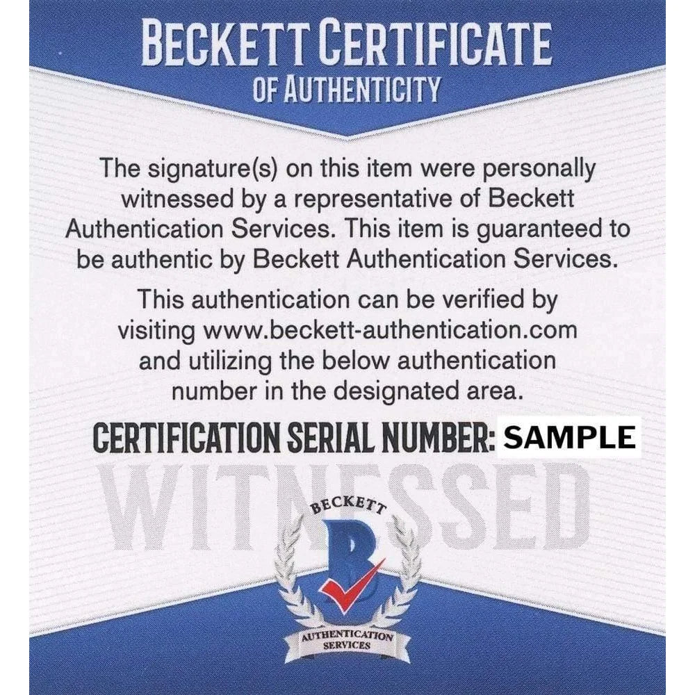 This item has been certified authentic by one of the most reputable and recognized authenticators in the business today, Beckett Authentication Services (BAS). This item comes with a BAS numbered tamper-proof authentication sticker and certificate of authenticity card that can be reviewed on their website 24/7/365 to guarantee its authenticity.