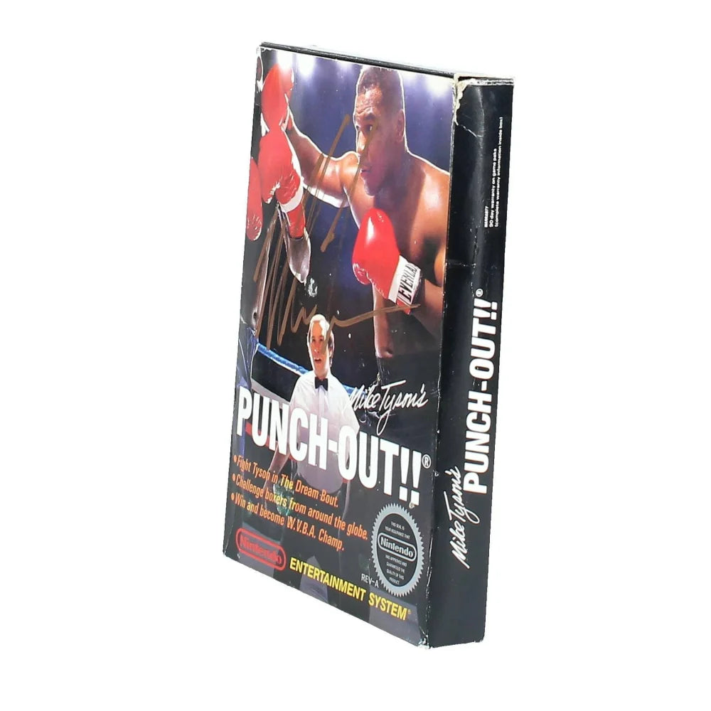 Mike Tyson collectors, this item is your calling! Check out this Original 1987 Nintendo (NES) "Mike Tyson's Punch-Out" video game box signed by none other than the "Baddest Man On The Planet" himself, Mike Tyson! This is a very rare item signed by Mike as the only "Punch-Out" memorabilia items you really see out there are the screenshot photographs from the game that everyone has, nothing unique like this like the actual & original packaging the game came in. In addition, you will receive the original and playable game cartridge of "Punch-Out" as well as the sleeve inside that holds it in place as well as the original game manual! You are getting a "knockout" deal here as if you search around and look you won't see any kind of offering on this level for such a great item!!! Considering this item is 34 years old its in very nice condition but please see photos to evaluate its condition on your own. The box along with the game, sleeve and manual come in a toploader for it's long term protection where it measures approximately 7" x 5" in size.