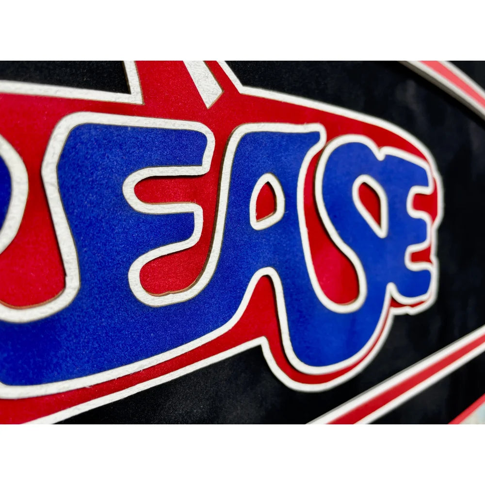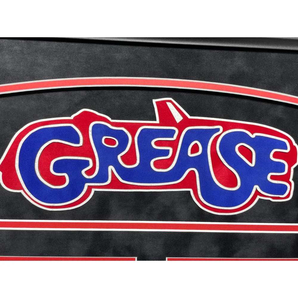 If you are looking for a high-end frame, well this piece is as high end as it gets. This item is professionally museum quality custom framed in a black frame that features double matting with a suede top mat as well as a plexi glass display and a custom laser cut suede movie logo! This frame measures approximately 23" x 24" x 0.5". This is a must-have item for all Grease fans' man caves, game rooms, office or lady lairs!