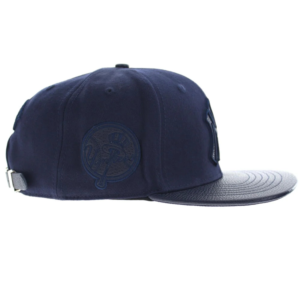 Elevate your fan gear with the New York Yankees Triple Tonal Strapback Hat from Pro Standard. This premium hat features a sleek all Navy Blue color with monochromatic leather team patches, showcasing your Yankees pride with a touch of modern style.