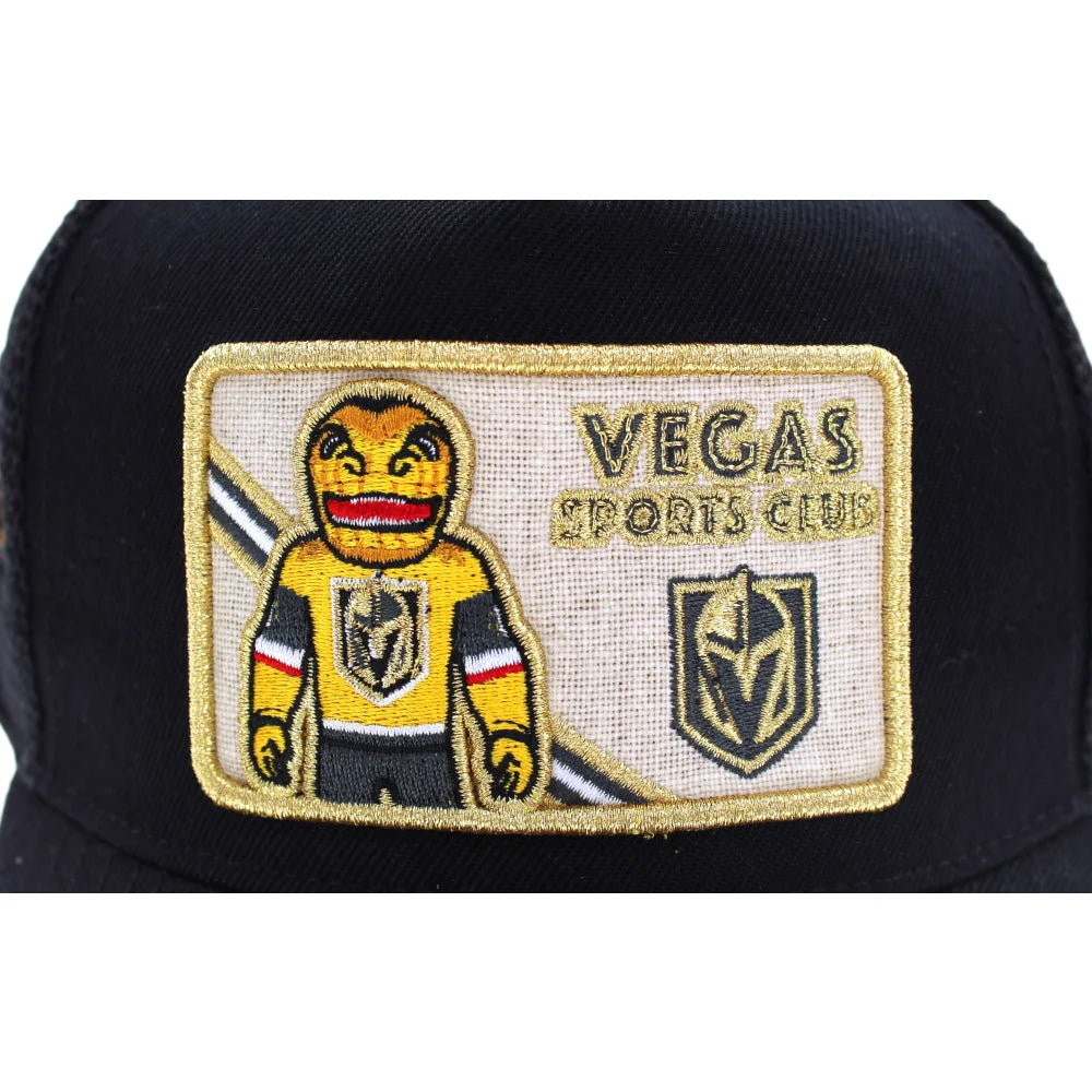 Support your team with bold style in the Vegas Golden Knights Chance Trucker Hat, featuring the official mascot and licensed by the NHL. This standout hat showcases Chance the Gila Monster in high quality patch, making it the perfect accessory for any Golden Knights fan. Exclusive Vegas Sports Club Patch: Unlike standard mascot hats, this edition features a one-of-a-kind patch with a metallic gold base, the “Vegas Sports Club” branding, a nearly full-body image of Chance, and the official Golden Knights logo—making it a standout collectible for dedicated fans.
