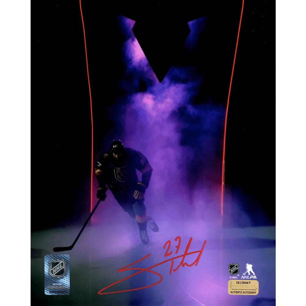 Looking for that unique item for your man cave? Well, this is it!! Shea Theodore Hand Signed 8x10 Photo! This is an epic shot of Shea coming through the tunnel of the VGK locker room out to the ice through the huge VGK helmet during pregame introductions every home game! A must-have for any VGK fan's man cave, game room, lady lair or office!