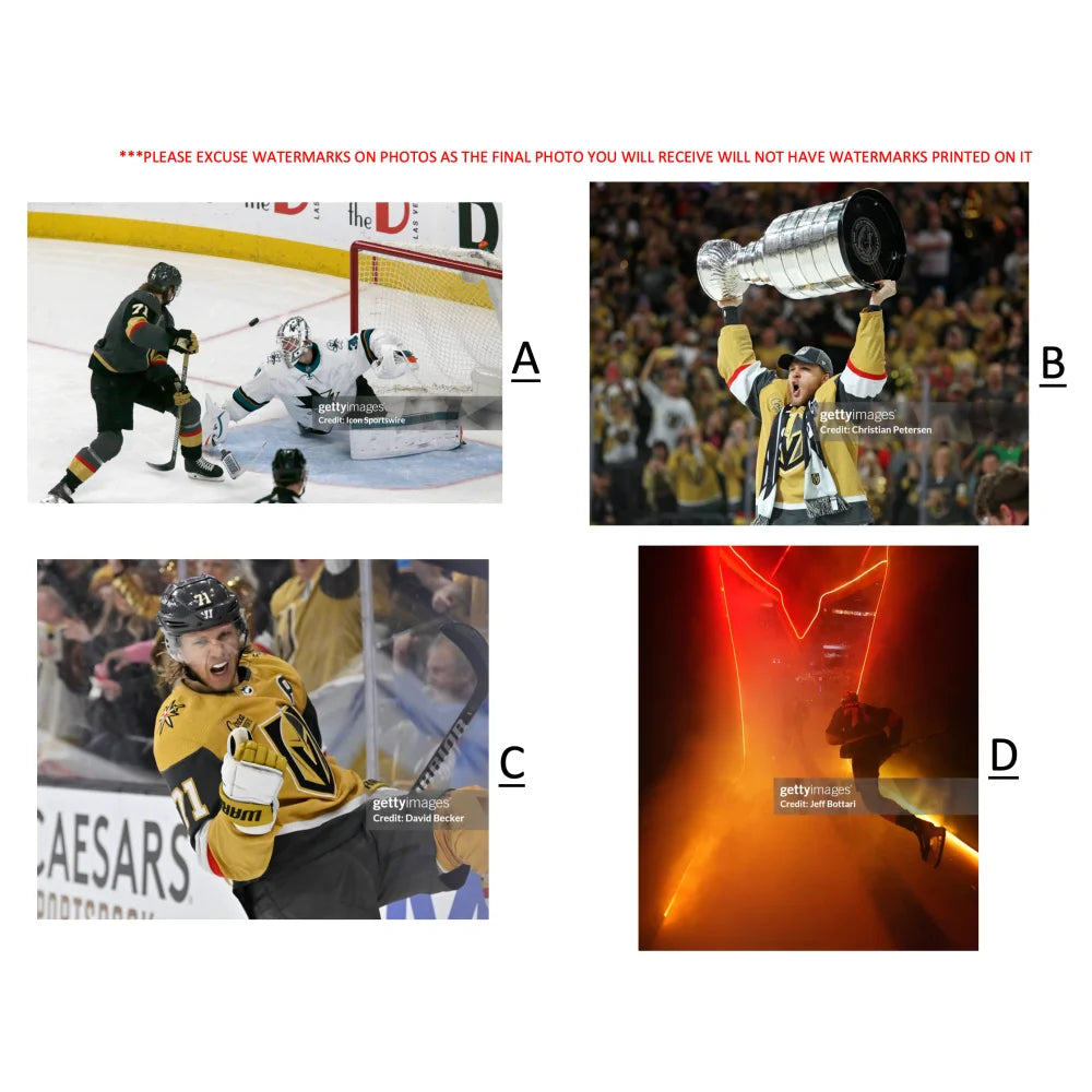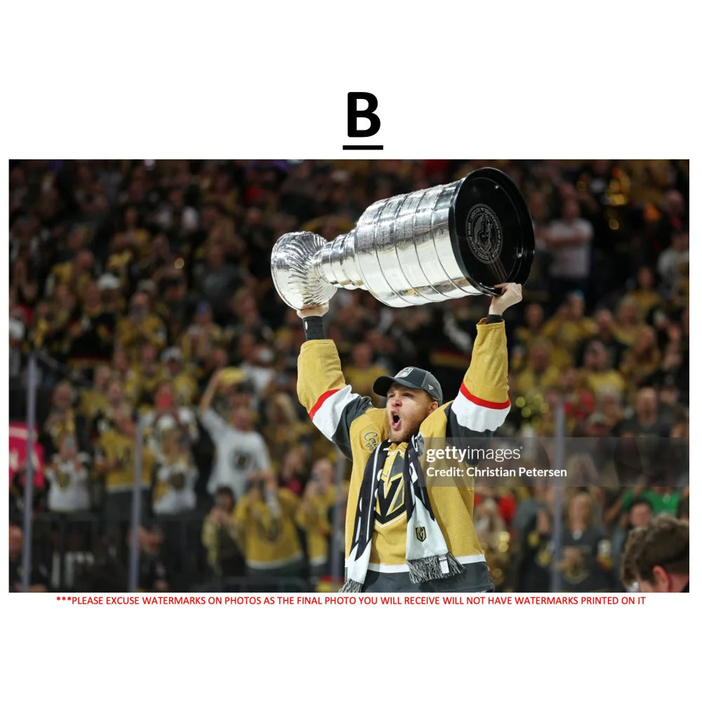 Choose from four different 8” x 10” photo options—each capturing a memorable moment from Karlsson’s time with the Vegas Golden Knights. Simply select your preferred photo from the dropdown menu before adding the item to your cart.